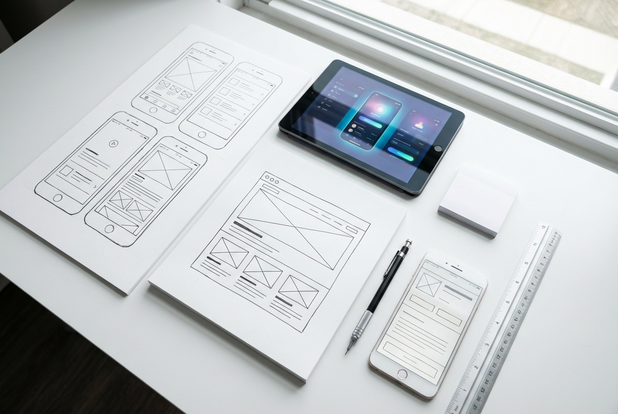Structural design: user flows, information architecture, and key screen layouts. Fast, iterative, and focused on getting the experience logic right.