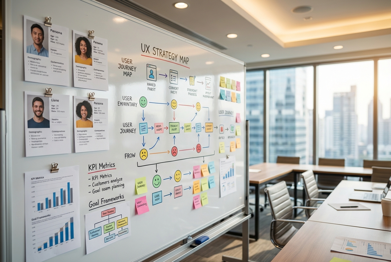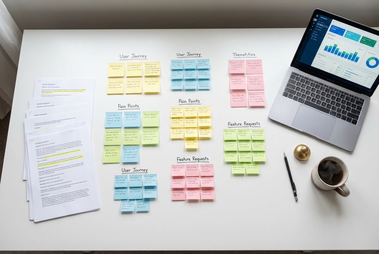 User research and data analysis to replace assumptions with evidence. The findings from this phase shape every design decision that follows.